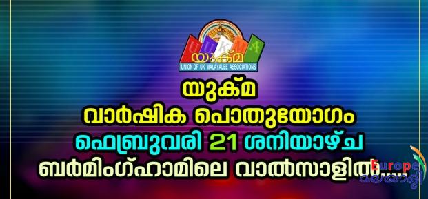 യുക്മ വാര്ഷിക പൊതുയോഗം ഫെബ്രുവരി 21 ശനിയാഴ്ച ബര്മിംഗ്ഹാമിലെ വാല്സാളില്