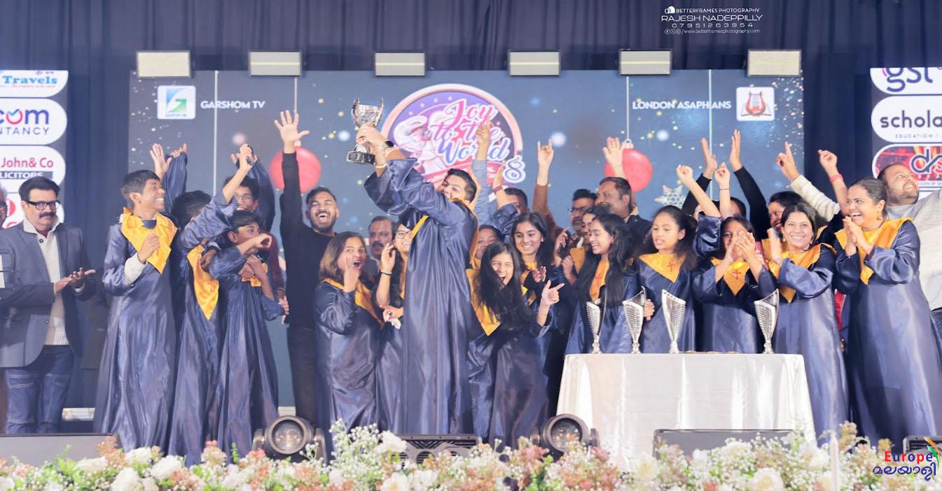 കരോള്‍ സംഗീതത്തിന്റെ അവിസ്മരണീയ നിമിഷങ്ങള്‍ സമ്മാനിച്ച് ഡിസംബര്‍ 6 ശനിയാഴ്ച്ച കവന്‍ട്രി വില്ലന്‍ഹാള്‍ സോഷ്യല്‍ ക്ലബില്‍ ഗര്‍ഷോം ടിവിയും , ലണ്ടന്‍ അസഫിയന്‍സും ചേര്‍ന്നൊരുക്കിയ  ജോയ് ടു  ദി വേള്‍ഡ് കരോള്‍ ഗാന മത്സരത്തിന്റെ എട്ടാം സീസണില്‍ പങ്കെടുത്തത് യുകെയിലെ മികച്ച പന്ത്രണ്ട് ഗായകസംഘങ്ങള്‍.  'ജോയ് ടു  ദി വേള്‍ഡ്' സീസണ്‍ 8 ഓള്‍ യുകെ കരോള്‍ ഗാന മത്സരത്തില്‍  കിരീടം ചൂടിയ  സാള്‍ട്‌ലി സെന്റ് ബെനഡിക്ട് സീറോ മലബാര്‍ മിഷന്‍ ക്വയര്‍ ഗ്രൂപ്പിന് ആയിരം പൗണ്ട് കാഷ് അവാര്‍ഡും 'ജോയ് ടു ദി വേള്‍ഡ്' വിന്നേഴ്‌സ്  ട്രോഫിയും ലഭിച്ചു.