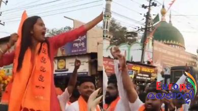 ഘോഷയാത്രയ്ക്കിടെ തുറന്ന വാഹനത്തില് നിന്ന്കൊണ്ട് വില്ല് കുലക്കും രീതിയില് ദര്ഗയ്ക്ക് നേരെ ആംഗ്യം കാണിക്കുകയായിരുന്നു. ബെളഗാവി ഖാനാപ്പൂര് റോഡിലൂടെ ഘോഷയാത്ര കടന്നുപോകുമ്പോഴാണ് ആംഗ്യം കാണിച്ചത്. ജയ് ശ്രീറാം വിളിച്ചുകൊണ്ടാണ് വില്ല് കുലക്കുന്നത്. ഒപ്പമുള്ളവര് ആര്പ്പ് വിളിക്കുന്നുണ്ട്.