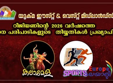 യുക്മ ഈസ്റ്റ് & വെസ്റ്റ് മിഡ്ലാന്‍ഡ്‌സ് റീജിയണിന്റെ 2026 വര്‍ഷത്തെ പരിപാടികളുടെ തീയ്യതികള്‍ തീരുമാനിച്ചു