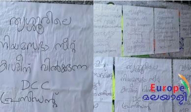 തൃശൂര് സീറ്റ് ക്രൈസ്തവര്ക്ക് കാശിനുവേണ്ടി വിറ്റുവെന്നും ഡിസിസി അധ്യക്ഷന് ജോസഫ് ടാജറ്റ്, മുന് എംഎല്എ എംപി വിന്സന്റ് എന്നിവരാണ് സീറ്റ് വില്പ്പനയ്ക്ക് പിന്നിലെന്നും പോസ്റ്ററില് പറയുന്നു. തൃശൂരില് രാജന് പല്ലന് സ്ഥാനാര്ത്ഥിയാകും എന്ന സൂചനകള് പുറത്തുവന്നതിന് പിന്നാലെയാണ് പോസ്റ്ററുകള് പ്രത്യക്ഷപ്പെട്ടത്.