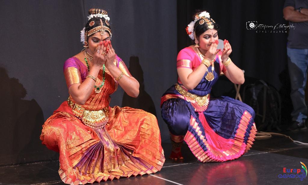 ബ്രിസ്റ്റളിലെ നര്ത്തകി ഡാന്സ് അക്കാദമിയിലെ അപര്ണ്ണ പവിത്രനും ശ്രീപാര്വതിയും ചേര്ന്ന് അവതരിപ്പിച്ച ഭരതനാട്യം പരിപാടിക്ക് തുടക്കമിട്ടു.ഭരതനാട്യത്തിന്റെ ചടുലഭാവങ്ങളും ലയബദ്ധമായ നൃത്തച്ചുവടുകളും സമന്വയിപ്പിച്ച് അപര്ണ്ണ പവിത്രനും ശ്രീ പാര്വതിയും മനോഹരമായ നൃത്തം അവതരിപ്പിച്ചു. ശുദ്ധമായ അഭിനയം, ചിട്ടയാര്ന്ന, ലയസൗന്ദര്യത്തോടെ നിറഞ്ഞ ചുവടുകള് എന്നിവ ചേര്ന്ന അവരുടെ പ്രകടനം വേദിയെ സജീവമാക്കി. ഭരതനാട്യത്തിന്റെ ഭംഗിയും നൃത്തശൈലിയിലെ ലാളിത്യവും ഒത്തുചേര്ന്ന ഈ അവതരണം പ്രേക്ഷകരുടെ ശ്രദ്ധയും പ്രശംസയും ഒരുപോലെ നേടി.
