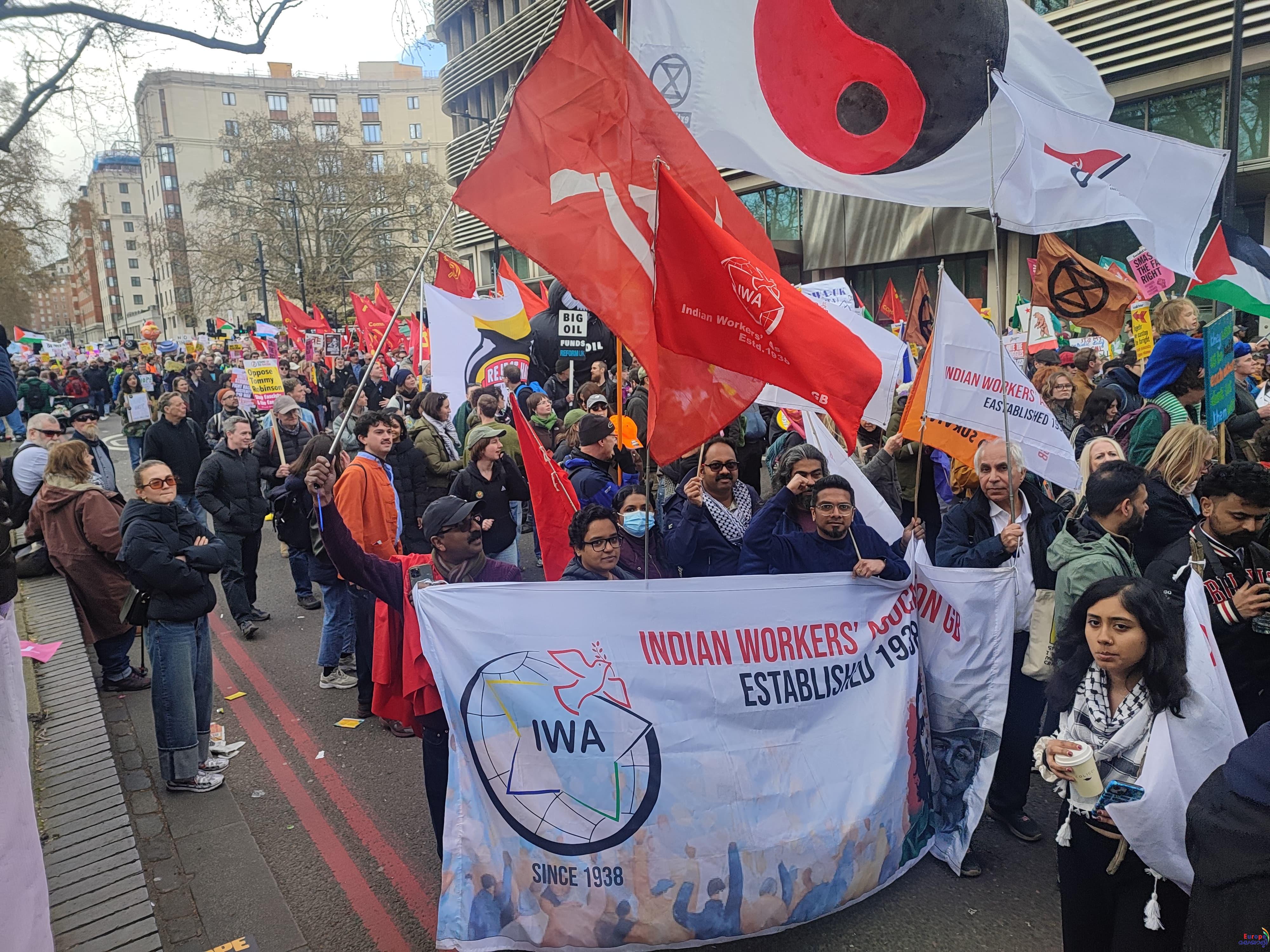 ബ്രിട്ടനിലെ ഇന്ത്യന്‍-ദക്ഷിണേഷ്യന്‍ തൊഴിലാളികളുടെ അവകാശങ്ങള്‍ക്കായി പതിറ്റാണ്ടുകളായി പോരാടുന്ന ഇന്ത്യന്‍ വര്‍ക്കേഴ്സ് അസോസിയേഷന്‍ (GB), ട്രേഡ് യൂണിയന്‍-കുടിയേറ്റ ഐക്യമുന്നണിയുടെ ഭാഗമായാണ് റാലിയില്‍ അണിനിരന്നത്. വംശീയതയ്‌ക്കെതിരായ പോരാട്ടങ്ങളില്‍ ചരിത്രപരമായ പങ്കുവഹിച്ചിട്ടുള്ള സംഘടന, വിവേചനത്തിനും ചൂഷണത്തിനും സാമൂഹിക അസമത്വത്തിനുമെതിരായ തങ്ങളുടെ പോരാട്ടം തുടരുകയാണെന്ന് വ്യക്തമാക്കി.