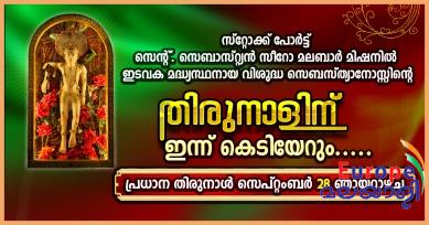 സ്റ്റോക്ക് പോര്ട്ട് സെന്റ് സെബാസ്റ്റ്യന് സീറോ മലബാര് മിഷന് ഇടവക മധ്യസ്ഥനായ വിശുദ്ധ സെബസ്ത്യാനോസ്സിന്റെ തിരുനാള് സെപ്റ്റംബര് ഇരുപത്തിയൊന്നാം തീയതി മുതല് ഇരുപത്തിയെട്ടാം തീയതി വരെ നടത്തപ്പെടും . ഇന്ന്