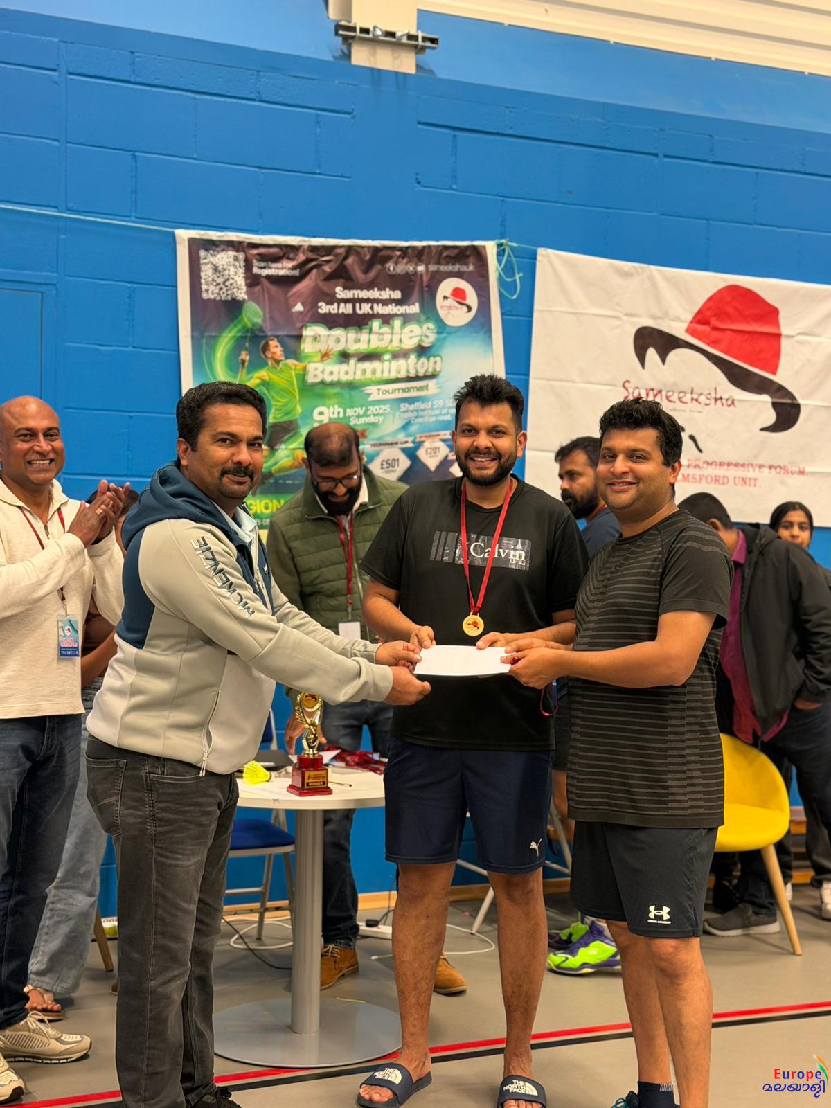 വാശിയേറിയ മത്സരം നടന്ന ചെംസ്ഫോര്ഡ് റീജിയണല് ടൂര്ണമെന്റില് ആല്വിന് - ദീപു കൂട്ടുകെട്ട് ഒന്നാം സ്ഥാനവും, സാം - ബാലു കൂട്ടുകെട്ട് രണ്ടാം സ്ഥാനവും, ആരുഹ്യ & ലവ് ഗോയല് ടീമുകള് മൂന്നാം സ്ഥാനവും കരസ്ഥമാക്കി. വിജയികള്ക്ക് ട്രോഫികള് സമീക്ഷ നാഷണല് കമ്മിറ്റി അംഗം ശ്രീ. ആന്റണി ജോസഫ് യൂണിറ്റ് സെക്രട്ടറി വിപിന് രാജ്, അര്ജുന് മുരളി, ഷോണി ജോസഫ്, വിനു സര്ദാര്, ജോസ് അഗസ്റ്റിന് എന്നിവര് ചേര്ന്ന് സമ്മാനിച്ചു.