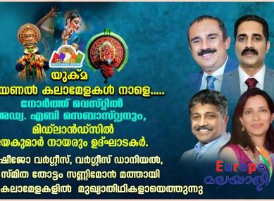 യുക്മ റീജിയണല്‍ കലാമേളകള്‍ നാളെ നോര്‍ത്ത് വെസ്റ്റില്‍ അഡ്വ. എബി സെബാസ്റ്റ്യനും, മിഡ്‌ലാന്‍ഡ്‌സില്‍ ജയകുമാര്‍ നായരും ഉദ്ഘാടകര്‍......ഷീജോ വര്‍ഗ്ഗീസ്, വര്‍ഗ്ഗീസ് ഡാനിയല്‍, സ്മിത തോട്ടം, സണ്ണിമോന്‍ മത്തായി തുടങ്ങിയവര്‍ കലാമേളകളില്‍ മുഖ്യാതിഥികളായെത്തുന്നു.