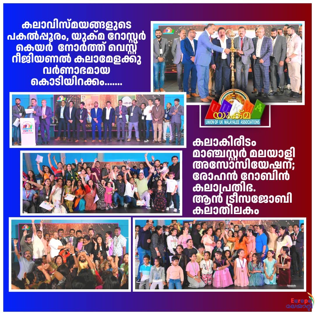 കലാവിസ്മയങ്ങളുടെ പകല്പ്പൂരത്തിനു കൊടിയിറങ്ങി. വിഗന് മലയാളി അസോസിയേഷന് ആതിഥേയത്വം വഹിച്ച യുക്മ റോസ്റ്റര് കെയര് നോര്ത്ത് വെസ്റ്റ് റീജിയണല് കലാമേള ഒക്ടോബര് 11 വിഗാന് ഡീന് ട്രസ്റ്റ് അങ്കണത്തില് വന് ജനാവലിയുടെ സാന്നിധ്യത്തില് തിരശീല വീണു. രാവിലെ 9 മണിയോടെ ആരംഭിച്ച കലാമേളയില് യുക്മ നോര്ത്ത് വെസ്റ്റ് റീജിയണിലുള്ള അംഗ അസ്സോസിയേഷനുകളില് നിന്നുമുള്ള നാനൂറിലധികം കലാകാരന്മാരും കലാകാരികളും പങ്കെടുത്തു. പ്രായം അനുസരിച്ച് കിഡ്സ്, സബ്-ജൂനിയര്, ജൂനിയര്, സീനിയര്, സൂപ്പര് സീനിയര് എന്നീ വിഭാഗങ്ങളില് ആയാണ് മത്സരങ്ങള് നടന്നത്.