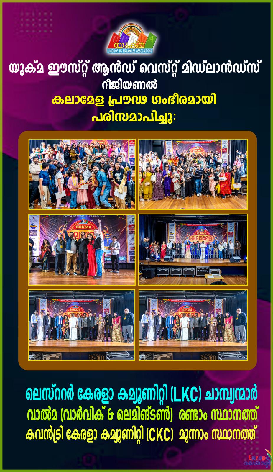 കലാതിലകമായി വാര്വിക് ആന്ഡ് ലെമിംഗ്ടണ് അസോസിയേഷന്റെ (വാല്മ) അദ്വൈത പ്രശാന്തനും കലാപ്രതിഭയയായി ലെസ്റ്റര് കേരള കമ്മ്യൂണിറ്റിയുടെ (LKC) കലേഷ് .ടി. രമണിയും പുരസ്കാരങ്ങള് കരസ്ഥമാക്കി.