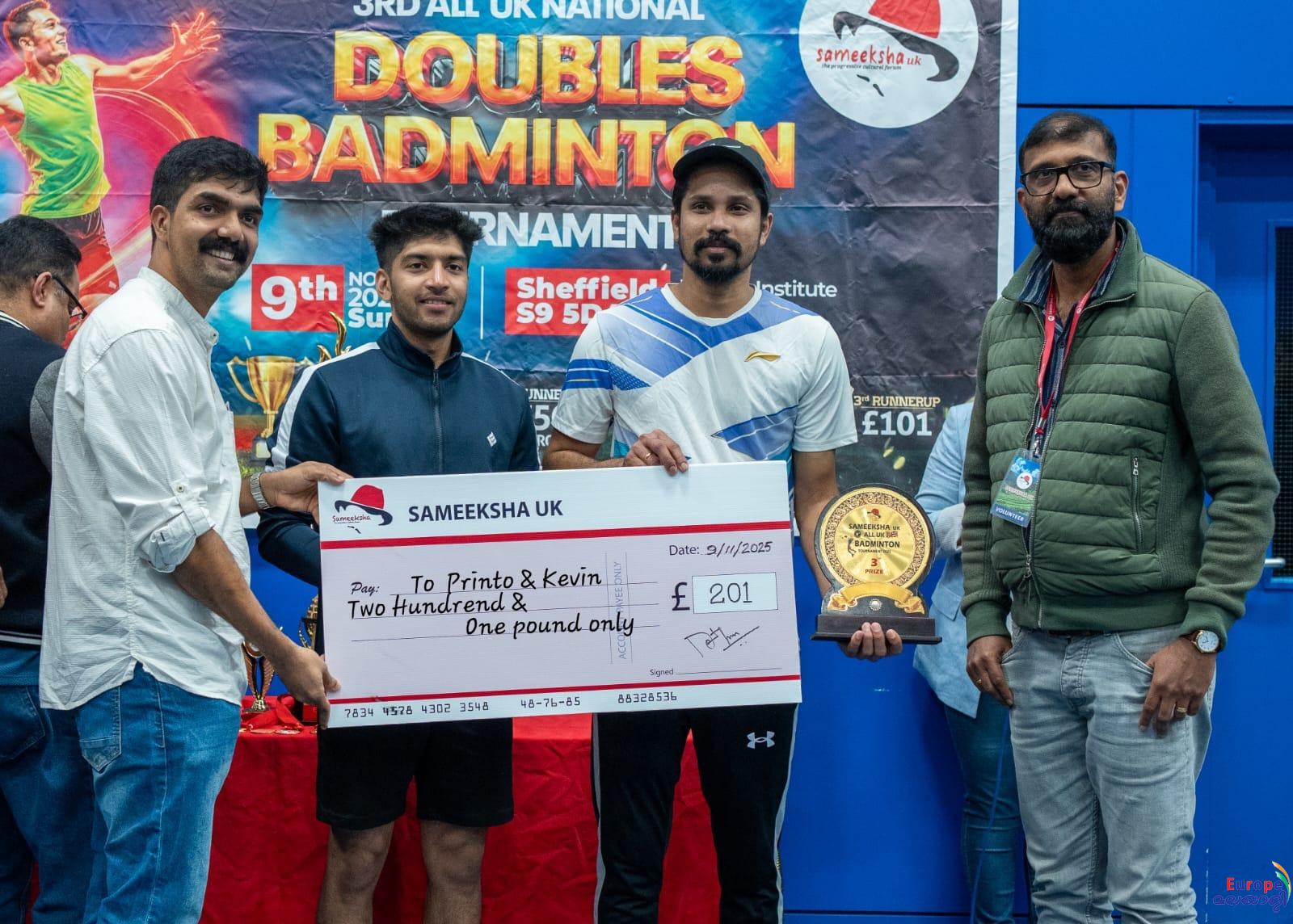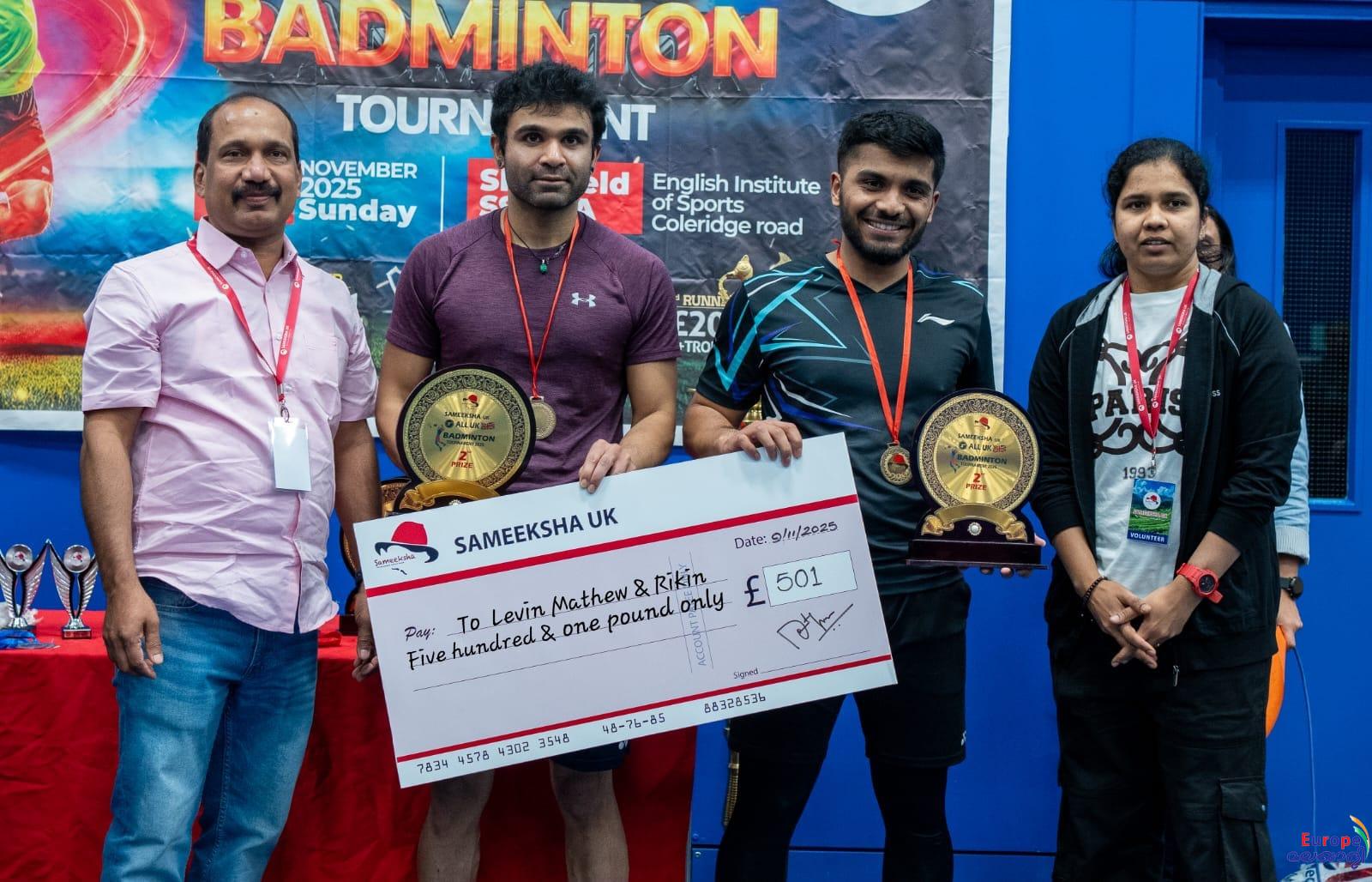 സമീക്ഷ യുകെ സംഘടിപ്പിച്ച മൂന്നാമത് ഓള് യുകെ ബാഡ്മിന്റണ് ടൂര്ണമെന്റ് 2025 അതിഗംഭീരമായ മത്സരങ്ങളോടും വലിയ ജന പങ്കാളിത്തത്തോടും കൂടി വിജയകരമായി സമാപിച്ചു.