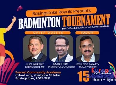 ലണ്ടന്: ബേസിംഗ്സ്റ്റോക്ക് റോയല്സ് സ്പോര്ട്സ് ക്ലബ്ബിന്റെ നേതൃത്വത്തില് നടത്തുന്ന രണ്ടാമത് ആള് യു കെ ഡബിള്സ് ബാഡ്മിന്റണ് ടൂര്ണമെന്റ് 2025 നവംബര് 15 ശനിയാഴ്ച ബേസിംഗ്സ്റ്റോക്ക് എവറസ്റ്റ് കമ്മ്യൂണിറ്റി അക്കാദമിയില് നടക്കും. രാവിലെ ഒന്പത് മണിക്ക് ആരംഭിക്കുന്ന ടൂര്ണമെന്റ് ബേസിംഗ്സ്റ്റോക്ക് മലയാളി കള്ച്ചറല് അസോസിയേഷന് പ്രസിഡന്റ് പൗലോസ് പാലാട്ടി ഫ്ളാഗ് ഓഫ് ചെയ്യും.