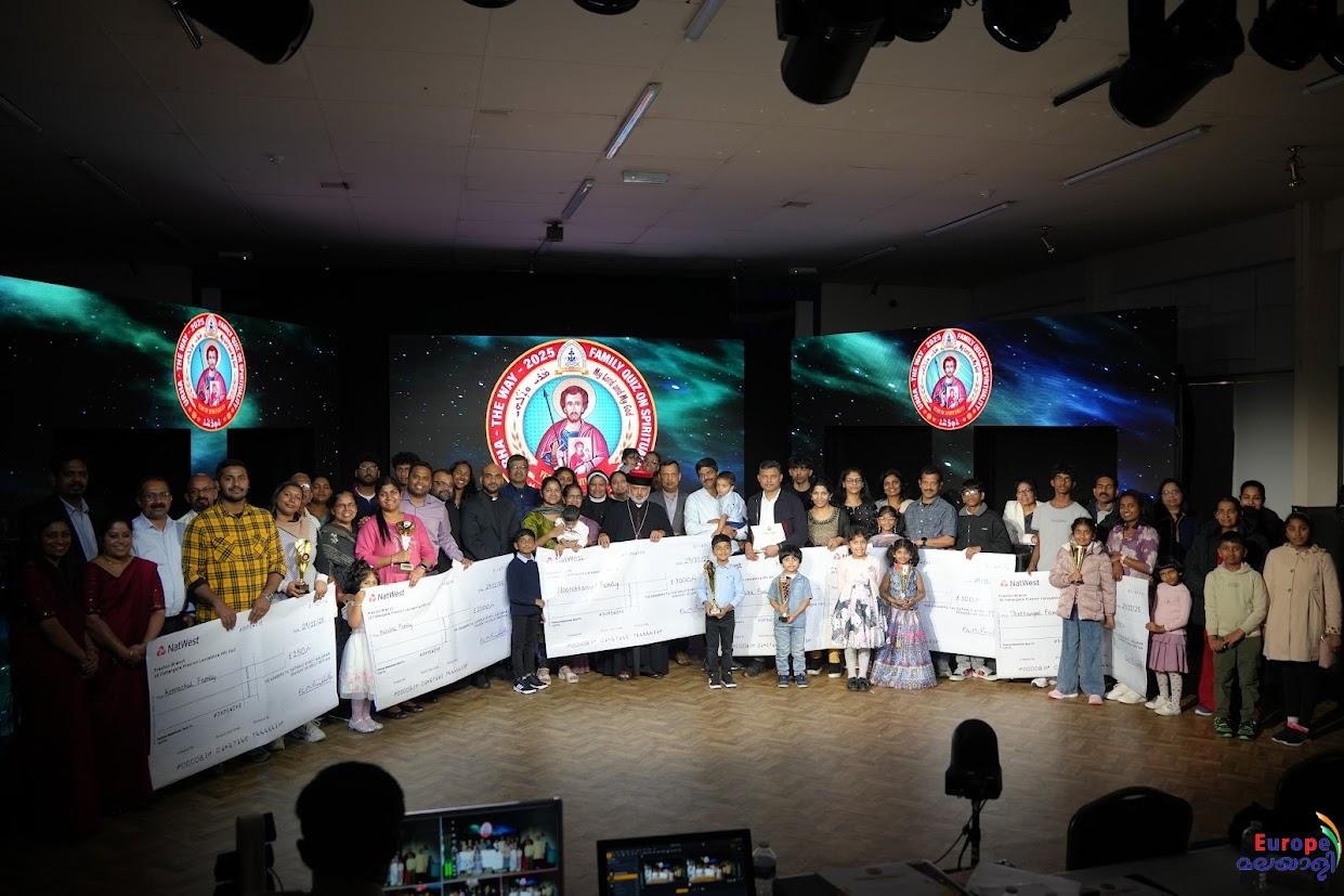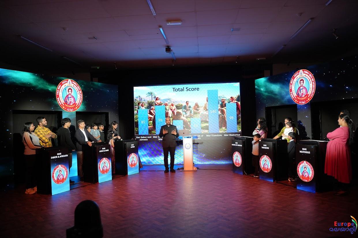 രണ്ടാം സമ്മാനമായ രണ്ടായിരം പൗണ്ടും ട്രോഫിയും ലണ്ടന് റീജിയനില് നിന്നുള്ള ഹാര്ലോ ഹോളി ഫാമിലി പ്രൊപ്പോസഡ് മിഷന് അംഗങ്ങളായ കളത്തില് ലിജിന് ചാക്കോ ജെയിംസ് , ശ്യാമ ജോര്ജ് എന്നിവരും , മൂന്നാം സമ്മാനമായ ആയിരം പൗണ്ടും ട്രോഫിയും ബിര്മിംഗ് ഹാം റീജിയണിലെ സ്റ്റോക്ക് ഓണ് ട്രെന്റ് ഔര് ലേഡി ഓഫ് പെര്പെച്വല് ഹെല്പ്പ് മിഷന് അംഗങ്ങള് ആയ പണ്ടാരക്കളത്തില് ജേക്കബ് കുര്യന് , സോണിയ കുര്യന് ,ജെറിന് ജേക്കബ് ,ജോഷ്വാ ജേക്കബ് , എന്നിവരും നാലാം സമ്മാനമായ ഇരുന്നൂറ്റി അന്പത് പൗണ്ടും ട്രോഫിയും ലണ്ടന് റീജിയനില് പെട്ട സെന്റ് മേരീസ് ആന്ഡ് ബ്ലെസ്സഡ് കുഞ്ഞച്ചന് മിഷന് അംഗങ്ങള് ആയ കൊന്നക്കല് മനീഷ മാത്യു , ബോസ്കോ കൊന്നക്കല് ഇന്നസെന്റ് എന്നിവരും , അഞ്ചാം സമ്മാനമായ നൂറ്റി അന്പത് പൗണ്ടും ട്രോഫിയും ബിര്മിംഗ് ഹാം റീജിയണിലെ വോള്വര് ഹാംപ്ടണ് ഔര് ലേഡി ഓഫ് പെര് പെച്വല് ഹെല്പ്പ് മിഷന് അംഗങ്ങള് ആയ മീനു തോട്ടുങ്കല് , ജിഫി പോള് തോട്ടുങ്കല് , എയിഡന് തോട്ടുങ്കല് , ആഗ്നസ് തോട്ടുങ്കല് എന്നിവരും , ആറാം സമ്മാനമായ നൂറ് പൗണ്ടും ട്രോഫിയും പ്രെസ്റ്റന് റീജിയനില് പെട്ട ബ്ലാക്ബേണ് സെന്റ് തോമസ് മിഷന് അംഗങ്ങള് ആയ സ്രാമ്പിക്കല് കണിച്ചേരില് ആന്റോ ജോളി , ജോളി ആന്റണി , അനിമോള് ആന്റണി ,ക്രിസ്റ്റിമോള് ജോളി ,ആന്ഡ്രിയ ജോളി എന്നിവരും കരസ്ഥമാക്കി . വിജയികള്ക്ക് രൂപതാധ്യക്ഷന് മാര് ജോസഫ് സ്രാമ്പിക്കല് സമ്മാനങ്ങള് വിതരണം ചെയ്തു രൂപതയുടെഇടവക / മിഷന് /പ്രൊപ്പോസഡ് മിഷന് തലങ്ങളില് കഴിഞ്ഞ ഒരു വര്ഷമായി നടന്നു വന്നിരുന്ന വിവിധ തലങ്ങളില് ഉള്ള മത്സരങ്ങളില് വിജയികളായി ഫൈനല് മത്സരത്തിനായി തിരഞ്ഞെടുക്കപ്പെട്ട 47 ടീമുകളെ ഉള്പ്പെടുത്തി നടന്ന പ്രാഥമിക എഴുത്തു മത്സരത്തില് വിജയികളായ ആറ് ടീമുകളാണ് ലൈവ് ആയി നടന്ന ഫൈനല് മത്സരത്തില് പങ്കെടുത്തത്. ,രൂപത ചാന്സിലര് റെവ ഡോ , മാത്യു പിണക്കാട്ട് ,ക്വിസ് മാസ്റ്റര് റെവ ഫാ നിധിന് ഇലഞ്ഞിമറ്റം , ലിവര്പൂള് സമാധാന രാജ്ഞി ഇടവക വികാരി റെവ. ഫാ ജെയിംസ് കോഴിമല , റെവ ഫാ മാത്യു മുണ്ടുനടക്കല് ,റെവ ഫാ സ്റ്റാന്റോ വഴിപറമ്പില് റെവ ഡീക്കന് ജോയിസ് പള്ളിക്യമാലിയില് ,റെവ ഡോ ജീന് മാത്യു എസ് എച്ച് ,ഡോ . മാര്ട്ടിന് ആന്റണി , ശ്രീമതി ജെയ്സമ്മ ബിജോ , പാസ്റ്ററല് കൌണ്സില് സെക്രെട്ടറി റോമില്സ് മാത്യു ,ആധ്യാത്മികത വര്ഷാചരണ കമ്മറ്റി അംഗങ്ങള് എന്നിവര് ചടങ്ങുകളില് പങ്കെടുത്തു ,.റീജിയണല് തലത്തില് എണ്പത് ശതമാനത്തിലധികം മാര്ക്കുകള് കരസ്ഥമാക്കിയ ടീമുകള്ക്കുള്ള സര്ട്ടിഫിക്കറ്റുകളും , ഏറ്റവും കൂടുതല് ടീമുകളെ റീജിയണല് തല മത്സരത്തില് പങ്കെടുപ്പിച്ച ഇടവക/ മിഷനുകള്ക്കുള്ള ട്രോഫികളും ഫൈനല് മത്സരത്തില് പങ്കെടുത്ത എല്ലാ ടീമുകള്ക്കുള്ള ട്രോഫിയും സര്ട്ടിഫിക്കറ്റുകളും , തദവസരത്തില് 