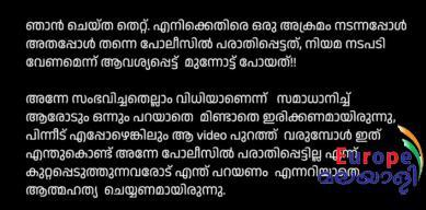 ഞാന് ചെയ്ത തെറ്റ്. എനിക്കെതിരെ ഒരു അക്രമം നടന്നപ്പോള്ത്തന്നെ പൊലീസില് പരാതിപ്പെട്ടത്, നിയമ നടപടി വേണമെന്ന് ആവശ്യപ്പെട്ട് മുന്നോട്ട് പോയത്. അന്ന് സംഭവിച്ചതെല്ലാം വിധിയാണെന്ന് സമാധാനിച്ച് ആരോടും ഒന്നും പറയാതെ മിണ്ടാതെ ഇരിക്കണമായിരുന്നു. പിന്നീട് എപ്പോഴെങ്കിലും ആ വീഡിയോ പുറത്ത് വരുമ്പോള് ഇത് എന്തുകൊണ്ട് അന്നേ പൊലീസില് പരാതിപ്പെട്ടില്ല എന്ന് കുറ്റപ്പെടുത്തുന്നവരോട് എന്ത് പറയണം എന്നറിയാതെ ആത്മഹത്യ ചെയ്യണമായിരുന്നു.