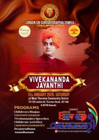 ലണ്ടനില് ഒരു ഗുരുവായൂരപ്പ ക്ഷേത്രം എന്ന സാക്ഷാത്കാരത്തിമായി പ്രവര്ത്തിക്കുന്ന, മോഹന്ജി ഫൗണ്ടേഷനും, ലണ്ടന് ശ്രീ ഗുരുവായൂരപ്പ സേവാ സംഘവും ചേര്ന്ന് വിവേകാനന്ദ ജയന്തി ആഘോഷം സംഘടിപ്പിക്കുന്നു. 2026 ജനുവരി 31 ആം തീയതി ശനിയാഴ്ച 6:00 pm മുതല് തോണ്ടന് ഹീത്തിലുള്ള വെസ്റ്റ് തോണ്ടന് കമ്മ്യൂണിറ്റി സെന്ററില് വച്ചാണ് ചടങ്ങുകള് സഘടിപ്പിച്ചിരിക്കുന്നത്. അന്നേദിവസം കുട്ടികള് അവതരിപ്പിക്കുന്ന ഭജന,വിവേകാനന്ദ പ്രഭാഷണം,കുട്ടികളുടെ ചിത്രരചന, ദീപാരാധന, അന്നദാനം ഉണ്ടായിരിക്കുന്നതാണ്.