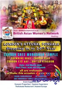ഏവരെയും സ്നേഹപൂര്വ്വം ലണ്ടന് ശ്രീ മുരുകന് ക്ഷേത്ര ആറ്റുകാല് പൊങ്കാലയിലേക്ക് ക്ഷണിച്ചു കൊള്ളുന്നതായി സംഘാടകര് അറിയിച്ചു. കൂടുതല് വിവരങ്ങള്ക്ക്: 020 8478 8433