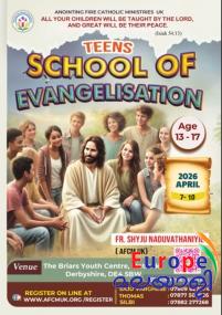 അഭിഷേകാഗ്‌നി കാത്തലിക് മിനിസ്ട്രിയുടെ നേതൃത്വത്തില്‍ ടീന്‍സ് സ്‌കൂള്‍ ഓഫ് ഇവാഞ്ചലൈസേഷന്‍ ഏപ്രില്‍ 7 മുതല്‍ ഡെര്‍ബിഷയറില്‍