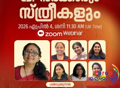 സ്ത്രീ സമീക്ഷയുടെ ആഭിമുഖ്യത്തില് കേരളനിയമസഭ ഇലക്ഷനോട് അനുബന്ധിച്ചു നടത്തുന്ന ഇലക്ഷന് ക്യാമ്പയിനിന്റെ ഭാഗമായി 'LDF സര്ക്കാരും സ്ത്രീകളും 'എന്ന ഓണ്ലൈന് വെബിനാര്, 2026 ഏപ്രില് 4 , ശനിയാഴ്ച യുകെ സമയം രാവിലെ11.30 നു നടക്കും. മാര്ച്ച് 29നു സ്ത്രീ സമീക്ഷ പ്രവര്ത്തകര് കൂടിയ മീറ്റിങ്ങില് LDF മൂന്നാം തവണയും ഭരണത്തില് വരേണ്ട ആവശ്യകതയെക്കുറിച്ചു ചര്ച്ചകള് നടന്നു. ഓണ്ലൈന് വെബിനാര് സമീക്ഷ നാഷണല് പ്രസിഡന്റ് രാജി ഷാജി ഉത്ഘാടനം ചെയ്യും. മുഖ്യപ്രഭാഷണം മലയാളം മിഷന് മുന് ഡയറക്ടര് ശ്രീമതി. സുജ സൂസന് നിര്വഹിക്കും. തുടര്ന്ന് സ്ത്രീ സമീക്ഷ പ്രവര്ത്തകരായ ശ്രീമതി. ജൂലി ജോഷി, ശ്രീമതി. ധന്യ സുഗതന്, ശ്രീമതി. സ്വപ്ന പ്രവീണ്, ശ്രീമതി. സീമ സൈമണ് എന്നിവര് സംസാരിക്കും.