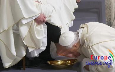 പരമ്പരാഗത രീതികള് പിന്തുടര്ന്ന് പോപ്പ് പന്ത്രണ്ട് പുരോഹിതന്മാരുടെ പാദങ്ങള് കഴുകി, ചുംബിച്ചു. ദൈവമാണ് യഥാര്ത്ഥ സര്വ്വശക്തിയെന്ന് തെളിയിക്കുന്ന ചടങ്ങ് കൂടിയാണ് ഇത്.