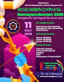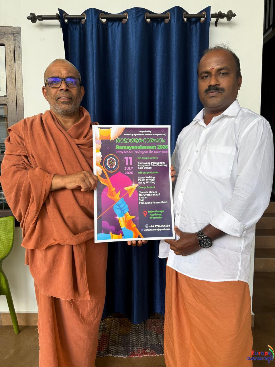വോര്സസ്സ്റ്റര്: OHM UK (Organisation of Hindu Malayalees UK)യുടെ ആഭിമുഖ്യത്തില് 2026 ജൂലൈ 11-ന് വോര്സസ്സ്റ്ററിലെ Tudor Grange Academy യില് സംഘടിപ്പിക്കുന്ന ''രാമായണോത്സവം 2026'' ന്റെ പോസ്റ്റര് പ്രകാശനം ചിദാനന്ദപുരി സ്വാമികള് നിര്വഹിച്ചു. പോസ്റ്റര് പ്രകാശനം നിര്വ്വഹിച്ച് നല്കിയ അനുഗ്രഹ സന്ദേശത്തില് പരിപാടിയ്ക്ക് എല്ലാവിധ മംഗളാശംസകളും സ്വാമിജി അറിയിച്ചു. യുകെയിലെ വിവിധ ഹിന്ദു സമാജങ്ങളെ ഒരുമിപ്പിക്കുന്നതിനും, കുട്ടികളിലും യുവജനങ്ങളിലും ആത്മീയ മൂല്യങ്ങളും സാംസ്കാരിക പൈതൃകവും വളര്ത്തുന്നതിനും ലക്ഷ്യമിട്ടുള്ളതാണ് ഉത്സവം സംഘടിപ്പിക്കുന്നത്.