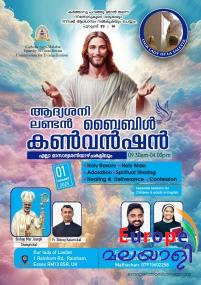 ലണ്ടനില് നടത്തപ്പെടുന്ന ആദ്യ ശനിയാഴ്ച്ച ബൈബിള് കണ്വെന്ഷന് തിരുക്കര്മ്മങ്ങളിലും ശുശ്രുഷകളിലും പങ്കുചേര്ന്ന് ആത്മീയ നവീകരണവും, സൗഖ്യ ശാന്തിയും, കൃപകളും, വിടുതലും മാതൃ മദ്ദ്യസ്ഥതയില് പ്രാപിക്കുവാന് ഏവരെയും സ്നേഹപൂര്വ്വം കണ്വെന്ഷനിലേക്ക് സ്വാഗതം ചെയ്യുന്നു.