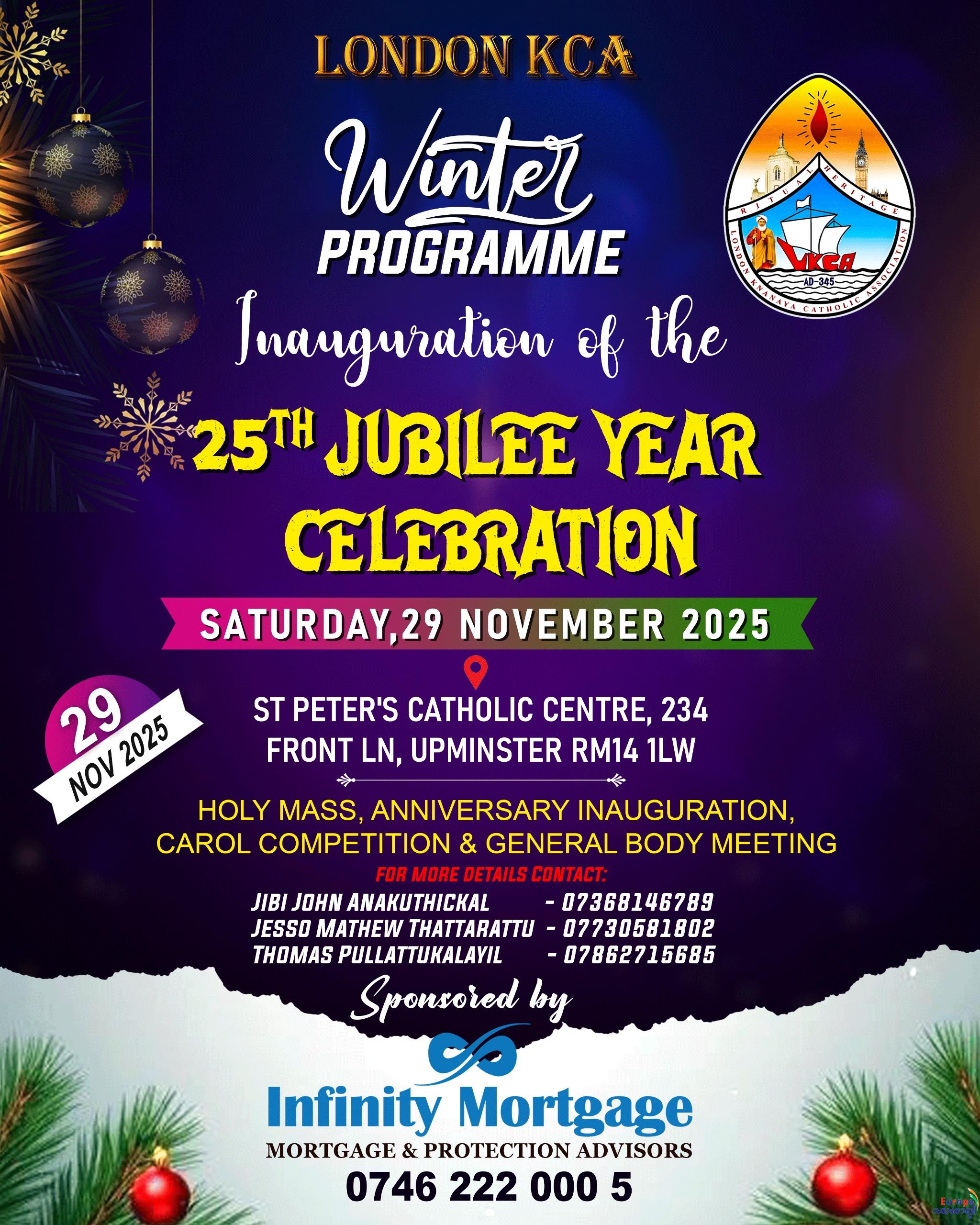 LKCA യുടെ സില്വര് ജൂബിലി ആഘോഷങ്ങള് നവംബര് 29-നുള്ള വിന്റര് പ്രോഗ്രാമിനോട് അനുബന്ധിച്ച് ആഘോഷകരമായി ആരംഭിക്കുമെന്ന് സംഘടന അറിയിച്ചു. വര്ഷം മുഴുവന് നീളുന്ന ഈ ആഘോഷപരമ്പരയുടെ തുടക്കം നവംബര് 29-ന് ദിവ്യബലിയോടെ നടത്തപ്പെടും.