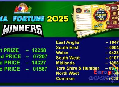 യുക്മ ഫോര്ച്യൂണ് ബംബര് 2025 ലോട്ടറിയുടെ നറുക്കെടുപ്പ് പതിനാറാമത് യുക്മ - ലൈഫ് ലൈന് ദേശീയ കലാമേള വേദിയില് വച്ച് നടത്തപ്പെട്ടു. കലാമേളയുടെ ഉദ്ഘാടനവും സമ്മാനദാനവും ഉള്പ്പടെ നടത്തിയ പ്രധാന വേദിയില് വച്ചാണ് യുക്മ ഫോര്ച്യൂണ് ലോട്ടറിയുടെ നറുക്കെടുപ്പും നടത്തിയത്. നറുക്കെടുക്കപ്പെട്ട നമ്പരുകള് ഇതോടൊപ്പം പ്രസിദ്ധീകരിക്കുന്നു. വിജയികളായവരുടെ കൂടുതല് വിവരങ്ങള് പിന്നീട് പ്രസിദ്ധീകരിക്കുന്നതാണ്.