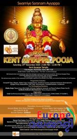 ഇംഗ്ലണ്ടിലെ കെന്റ് ഹിന്ദു സമാജത്തിന്റെ  13-ാമത് വാര്‍ഷിക അയ്യപ്പ പൂജ 2025 നവംബര്‍ 29-ാം തീയതി ശനിയാഴ്ച വൈകുന്നേരം 5:00 മണി മുതല്‍ രാത്രി 10:00 മണി വരെ, കെന്റ് അയ്യപ്പ ടെമ്പിളില്‍ നടക്കുന്നതാണ്.